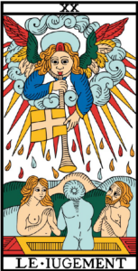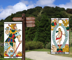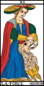 Il leone ruggente diventa docile e collabora con l’Anima, la donna con il cappello ad Infinito. Si arrende a un a Forza più grande. E’ il momento di rivolgersi a Lei e chiedere, fare la nostra domanda “vado di qui o di là, cosa è meglio fare in questo momento? Questo passaggio mette in moto l’intuizione. E’ come impostare la destinazione sul navigatore. Chiedere con fiducia sapendo che la risposta è già presente, e che saremo capaci di capirla e seguirla.